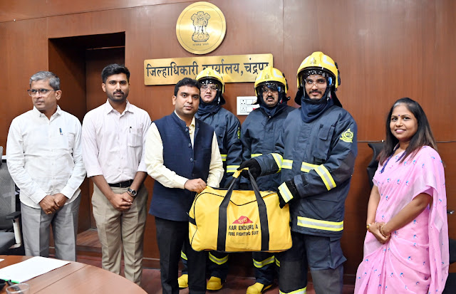 चंद्रपूर: राज्य आपत्ती व्यवस्थापन प्राधिकरण व जिल्हा आपत्ती व्यवस्थापन प्राधिकरण यांच्या संयुक्त विद्यमानाने चंद्रपूर जिल्ह्यातील नगर परिषद व नगर पंचायत येथे कार्यरत असलेल्या अग्निशमन दलातील जवानांना जिल्हाधिकारी तथा जिल्हा आपत्ती व्यवस्थापन प्राधिकरणचे अध्यक्ष विनय गौडा जी.सी. यांच्या हस्ते फायर प्रॉक्झिमिटी सूट ( fire proximity suit ) चे वितरण करण्यात आले.