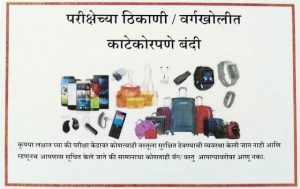 पाठ्यपुस्तकसामग्री मुद्रित किंवा लिखित, कागदांचे तुकडे, भूमिती/ पेन्सिल बॉक्स,प्लास्टिक पाऊच, कॅल्क्युलेटर, स्केल, रायटिंग पॅड, पेनड्राइव्ह, इरेजर, कॅल्क्युलेटर, लॉग टेबल, इलेक्ट्रॉनिक पेन/स्कॅनर इत्यादि कोणतीही स्टेशनरी वस्तू, मोबाइल फोन, ब्लूटूथ, इयरफोन, मायक्रोफोन, पेजर, हेल्थबँड इत्यादि कोणतेही कम्युनिकेशन डिव्हाइस, वॉलेट,गॉगल्स, हॅडबॅग्ज, बेल्ट कॅप इत्यादि इतर वस्तु कोणतेही घडयाळ/मनगटी घडयाळ, ब्रेसलेट, कॅमेरा इ. कोणतेही दागिने, कोणतीही खाण्यायोग्य वस्तू उघडलेली किंवा पॅक केलेली वगैरे. मायक्रोचिप, कॅमेरा ब्लूटूथ डिव्हाइस इत्यादि संप्रेषण साधने लपवून अनुचित सांधनासाठी वापरली जाणारी इतर कोणतीही वस्तू.