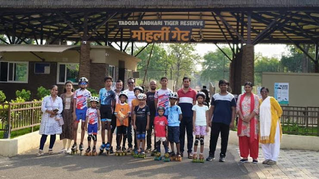 चंद्रपूर, दि. 25 मे: व्याघ्रभूमी म्हणून ओळखल्या जाणाऱ्या चंद्रपूर शहरातील शंकर क्रीडा व सांस्कृतिक मंडळाच्या वतीने नुकतेच ‘नेचर स्केटिंग सफारी’ चे आयोजन करण्यात आले होते. या उपक्रमात सहभागी 10 स्केटिंग खेळाडूंनी दुर्गापूर – पद्मापूर – आगरझरी ते मोहरली या ताडोबा अभयारण्याच्या क्षेत्रातील एकूण १० किलोमीटरचा निसर्गरम्य आणि जंगल रस्ता स्केटिंग करत पार केला.