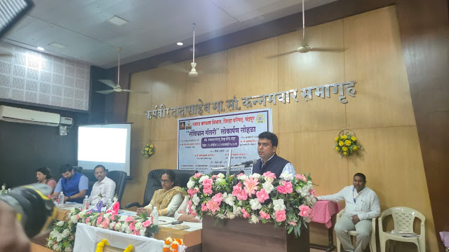 चंद्रपूर: भारतीय संविधानाची महती ग्रामीण जनतेपर्यंत पोहोचवून त्यांच्यामध्ये संविधानिक मूल्यांविषयी जागृती निर्माण करण्याच्या हेतूने धम्मचक्र अनुप्रवर्तन दिनाचे औचित्य साधून जिल्हा परिषद, चंद्रपूर येथे ‘संविधान गॅलरी’ चे उद्घाटन जिल्हाधिकारी विनय गौडा जी.सी. यांच्या हस्ते करण्यात आले. यावेळी प्रमुख पाहुणे म्हणून मुख्य वनसंरक्षक एम. रामानुजन, मुख्य कार्यकारी अधिकारी पुलकित सिंह उपस्थित होते.